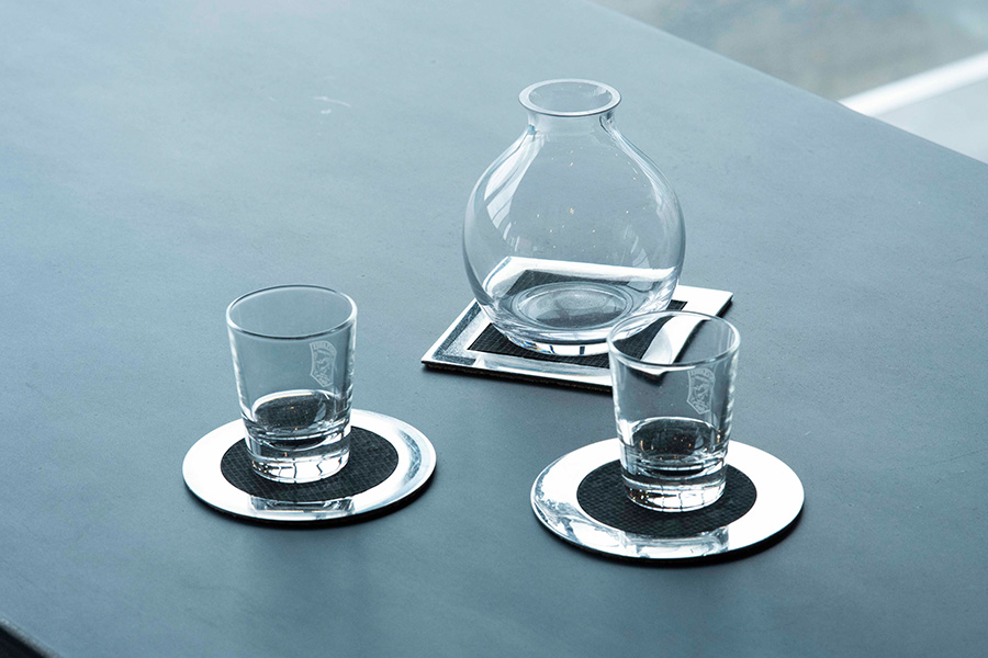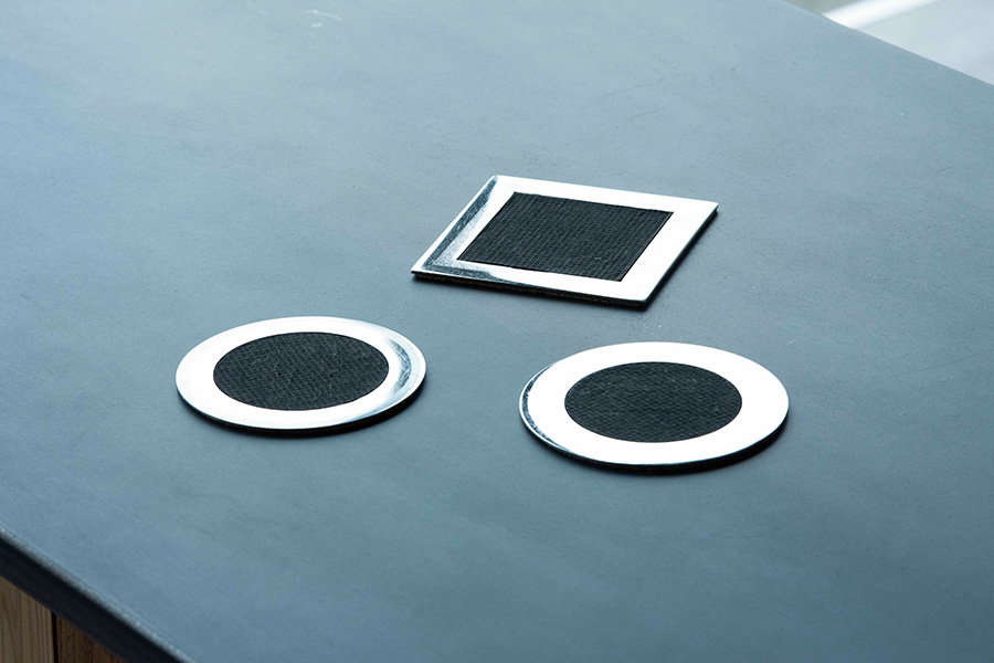 MATERIALステンレス鏡面材 大島紬 裏面:薄コルク材圧着(接着)